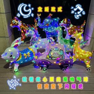 可拉绳发光款带轮子走路铝膜气球卡通动物儿童生日装饰夜市摆摊