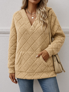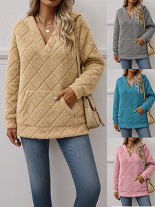 2025外贸跨境新款女装 休闲V领长袖套头净色多色女式连帽毛绒卫衣