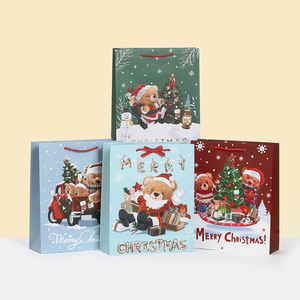圣诞小熊印花手提纸袋生日礼物伴手礼品纸袋批发冬日氛围感手提袋
