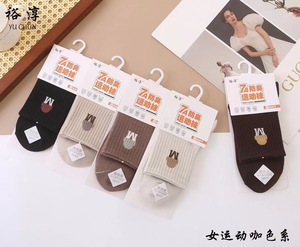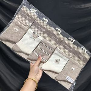 秋款新品!燕麦色女士运动袜简约条纹袜混搭中筒棉袜ins风潮袜