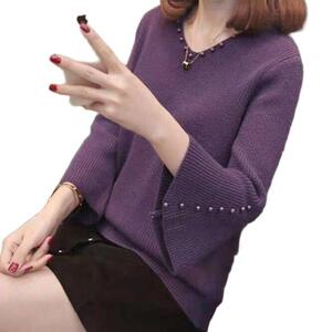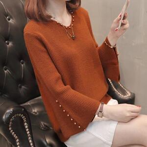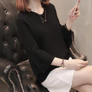 网红爆款新款时尚修身显瘦宽松套头钉珠毛衣打底衫