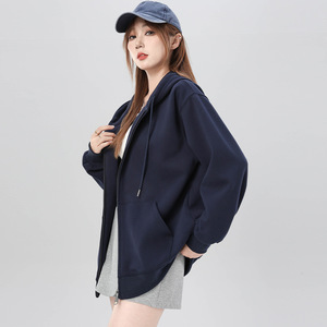仿棉华棉复合 美式复古连帽卫衣女春秋新款宽松慵懒风oversize