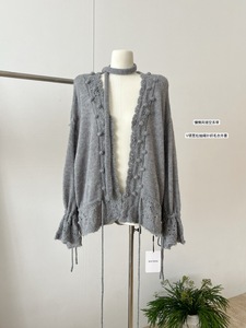 2025实拍V领毛球针织衫女秋新设计感气质系带收腰显瘦百搭毛衣