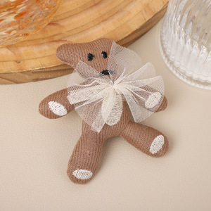 卡通布艺领结小熊可爱韩版小熊发夹胸针配件甜美充棉服饰小熊辅料