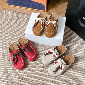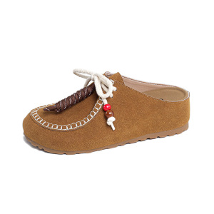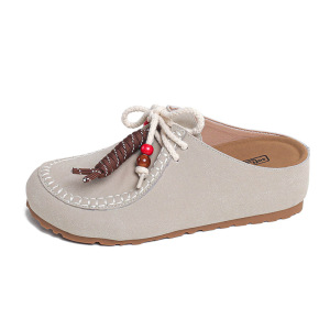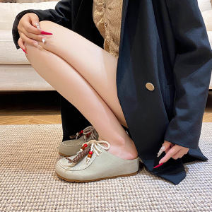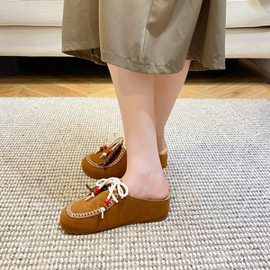 275易鑫达~葡萄妈时髦真皮大头勃肯系带外穿增高包头半拖鞋女春秋