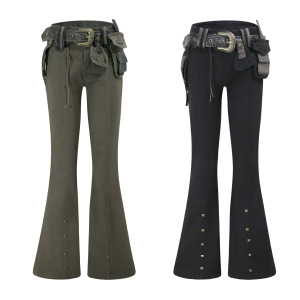 Fudge Pink 2025秋季New美式复古重工腰带设计辣妹微喇长裤