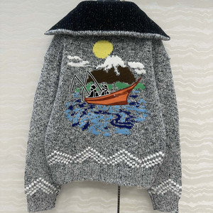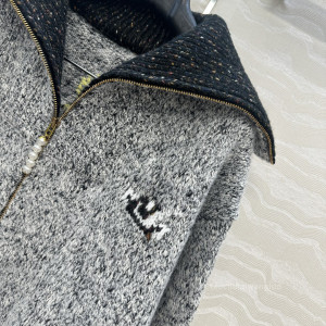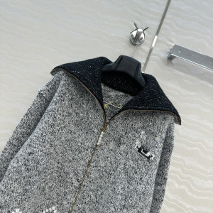 撞色大翻领针织拉链外套 慵懒中性风宽松显瘦长袖开衫秋冬AW81561