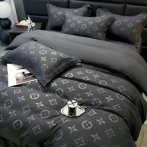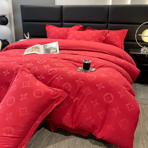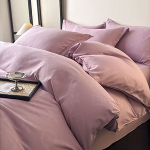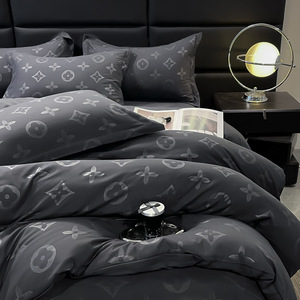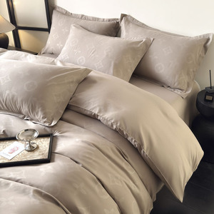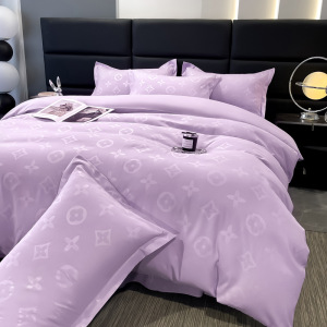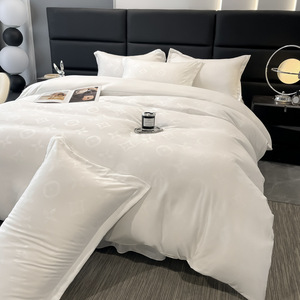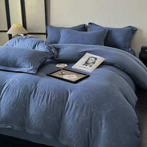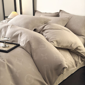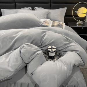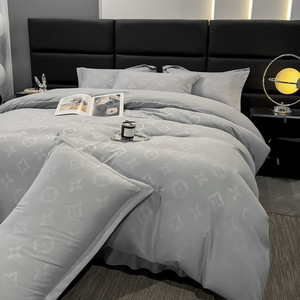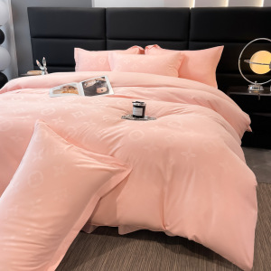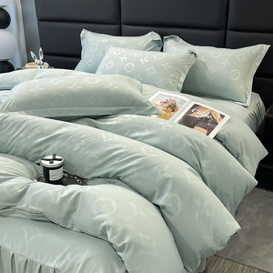 跨境亚马逊轻奢大牌风磨毛压花四件套纯色被套床单床笠床品批发