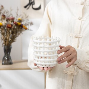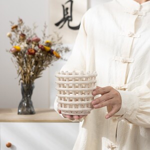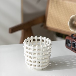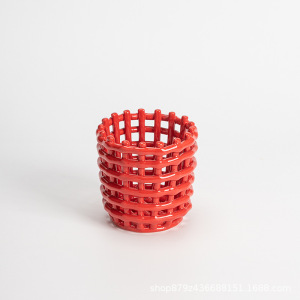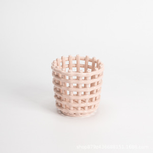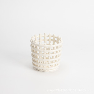 北欧风手工编织陶瓷家用收纳篮办公室桌面收纳置物架陶瓷工艺摆件