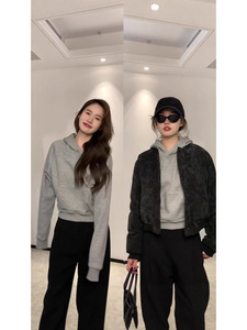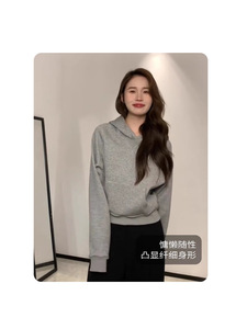 灰色短款连帽卫衣女秋季正肩显瘦修身2025新款小个子初秋穿搭即墨