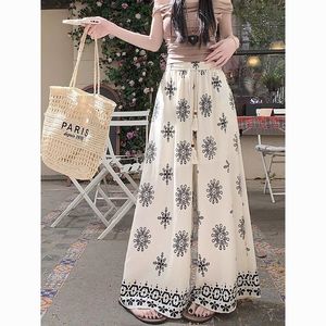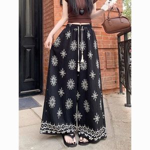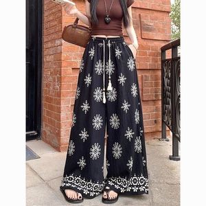 夏季薄款大码民族风裤子女宽松遮肉显瘦直筒波西米亚风阔腿裤胖mm