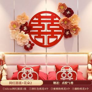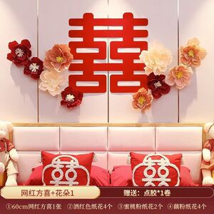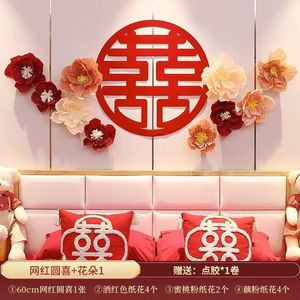 婚房装饰布置套装贴背景墙结婚装饰场景布置褶皱纸花婚礼装饰