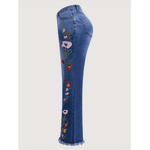 2025新款 刺绣弹力牛仔裤 水洗牛仔 女装大码微喇牛仔裤