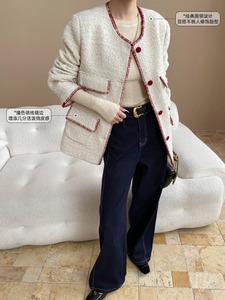 司南 老钱静奢感 法式撞色明线缝边羊毛粗花呢小香风外套 SN7958