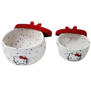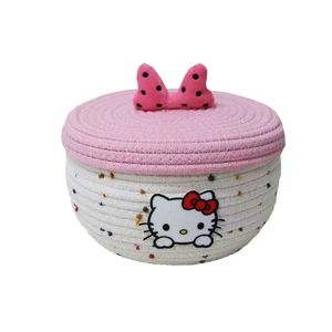 桌面收纳筐可爱KT猫棉线编织带盖收纳筐桌面零食收纳盒杂物整理篮
