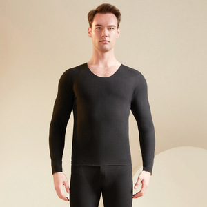 蚕丝羊绒情侣保暖内衣女圆领加绒冬季保暖套装德绒保暖衣男秋衣裤