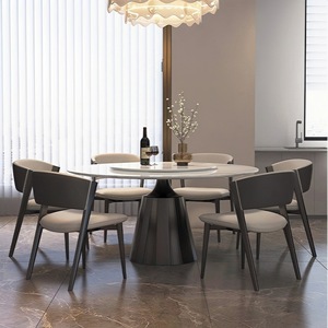 1.2m轻奢岩板餐桌【送转盘】+6把米兰椅-优质