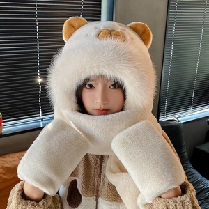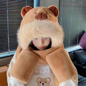 卡皮巴拉帽子围巾手套三件套一体冬季防风保暖毛绒三件套成人帽子