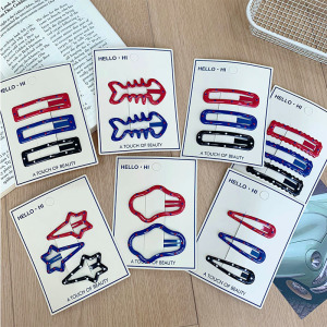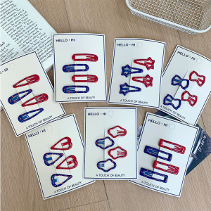 新款韩版滴油波点红蓝色bb夹简约爱心鱼骨可爱侧边碎发刘海夹头饰