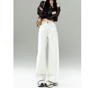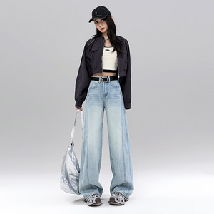 浅色解构弯刀牛仔裤女小个子2025新款春夏宽松垂感美式直筒阔腿裤