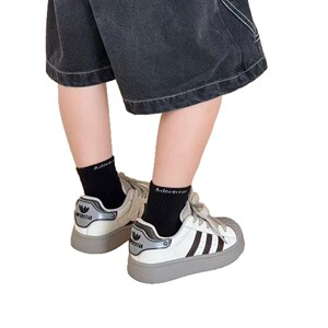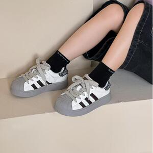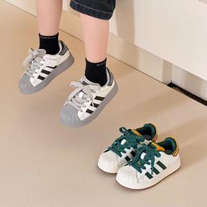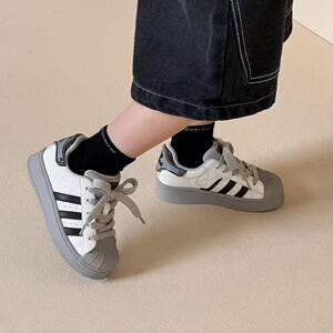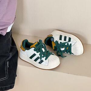 百搭chic鞋子厚底板鞋儿童2025新款春秋复古德训鞋贝壳头小白鞋