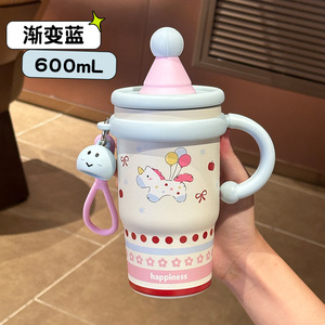 2025年新款高颜值办公水杯内胆不锈钢保温杯女生可爱双饮手柄杯子