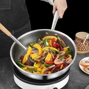 蜂窝平底锅电磁炉两用韩式不锈钢炒锅不粘锅加厚家用多功能炒菜锅