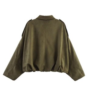 2025秋冬款欧美跨境女装带口袋绒面质感飞行员夹克外套w107 8868