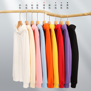 新款华棉男女连帽卫衣春秋款长袖纯色外套休闲校园连帽衫定制logo