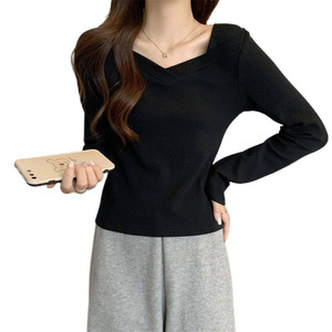 黑色方领打底衫女秋冬新款设计感弹力修身洋气百搭长袖内搭上衣