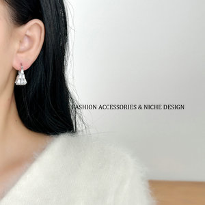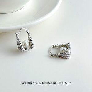法式轻奢超闪微镶锆石珍珠包包耳扣女气质高级感个性独特耳环耳饰