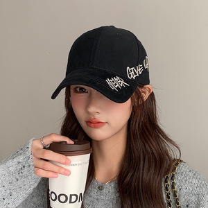 字母刺绣磨毛软顶棒球帽子女秋冬季韩版大头围复古显脸小鸭舌帽男