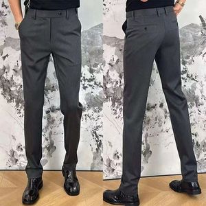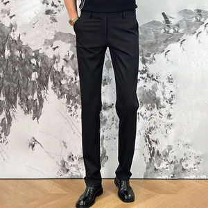 高品质欧货商务纯色休闲裤男士春秋新款轻奢修身小直角裤弹力西裤