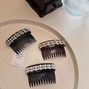 时尚珍珠水钻刘海发梳头饰韩系新款成人后脑勺碎发整理倒插梳夹子