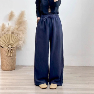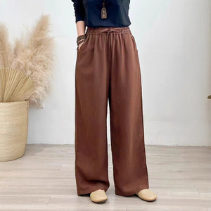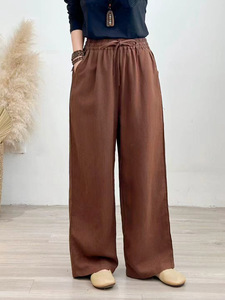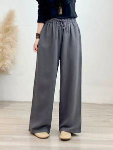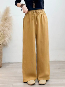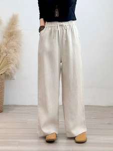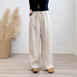 2025年秋季新款加厚砂洗亚麻直筒裤复古文艺系带女式宽松休闲长裤