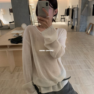i miss韩标设计感镂空慵懒针织衫女2025秋季新款圆领套头毛衣上衣
