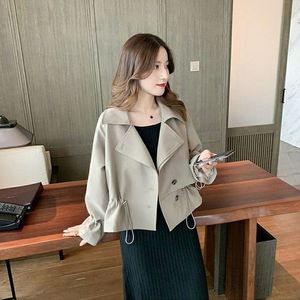 外衣女秋季新款女装韩版抽绳纯色短款风衣女神百搭小个子轻熟上衣