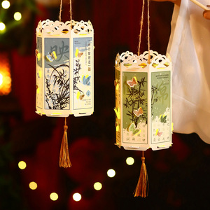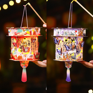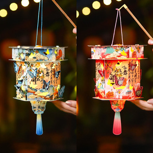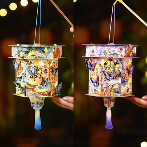 中秋节国风纸灯笼2025新款儿童手工diy材料户外手提古风蝴蝶花灯