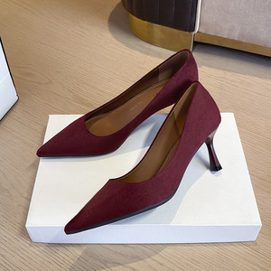 3356-29 羊绒气质尖头高跟鞋女细跟单鞋纯色百搭工作鞋秋冬不累脚