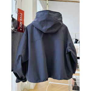 高级感韩系连帽短款外套女2024春秋款宽松薄款冲锋衣简约休闲夹克