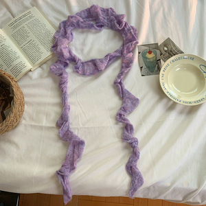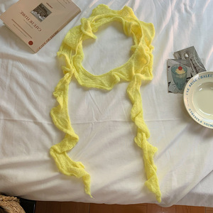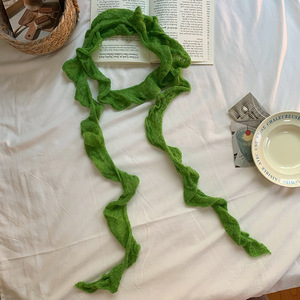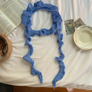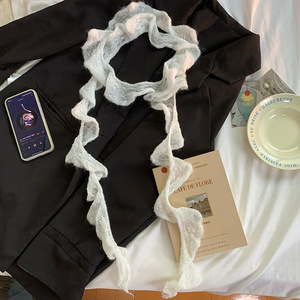 厂家直销~复古褶皱不规则针织细长围巾y2k少女装饰窄细马海毛围脖
