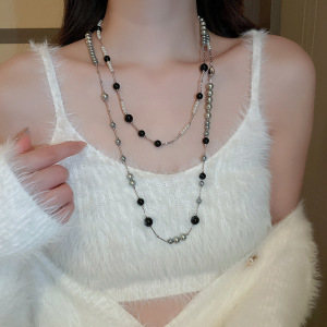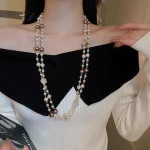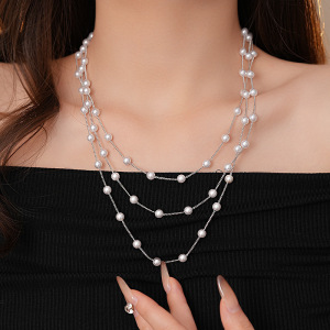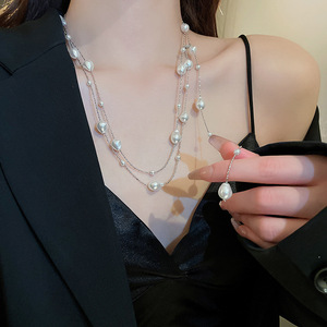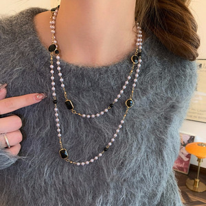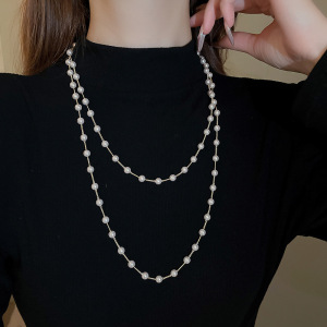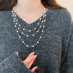 法式多层珍珠项链复古温柔简约百搭气质毛衣链轻奢高级感项饰批发
