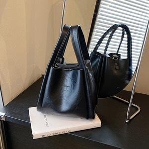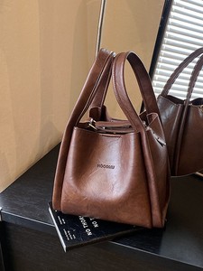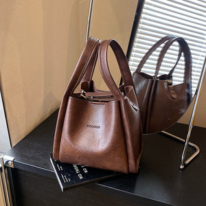 外贸高级感手提水桶包女2025新款时尚复古休闲单肩小众通勤斜挎包
