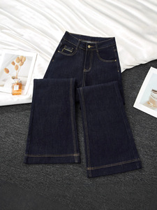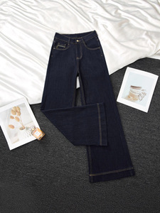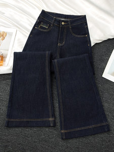 丹宁色阔腿牛仔裤女2025年秋季新款弹力高腰宽松直筒拖地裤子