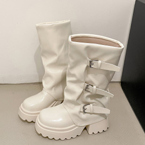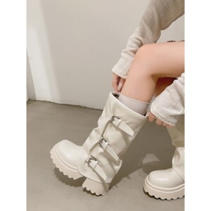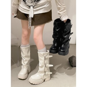 白色英伦风粗高跟厚底马丁靴女款2025新款秋季小个子显瘦裤管靴子