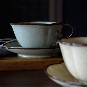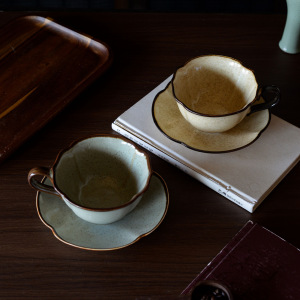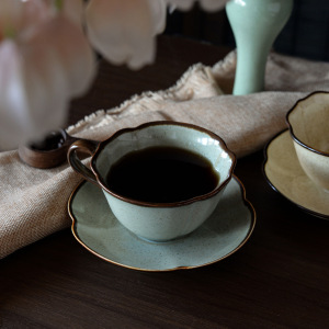 〖中古拉花杯复古咖啡杯碟〗套装 釉下彩家用水杯下午茶陶瓷杯