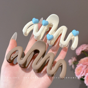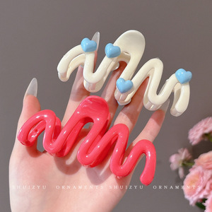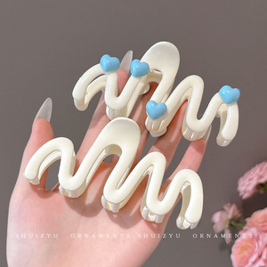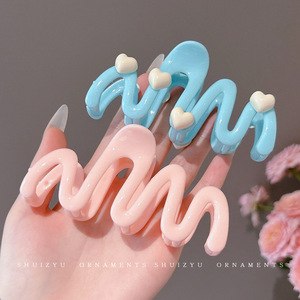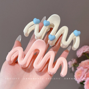 奶油蓝爱心波浪发夹女后脑勺盘发抓夹鲨鱼夹子可爱发卡头饰夏清新