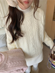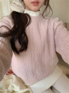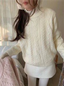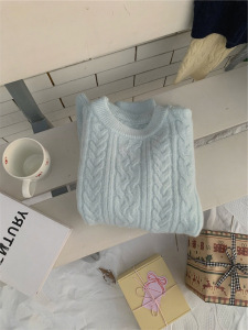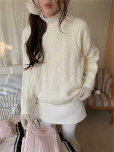 跨境十色入 超软糯舒服复古麻花辫简约纯色气质圆领套头针织毛衣