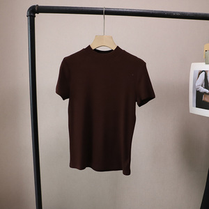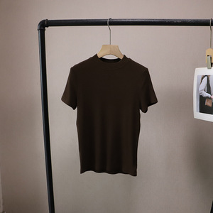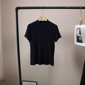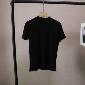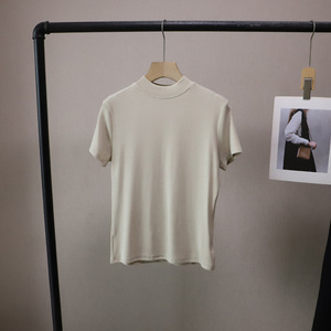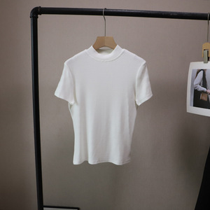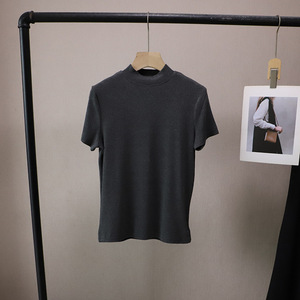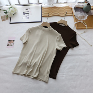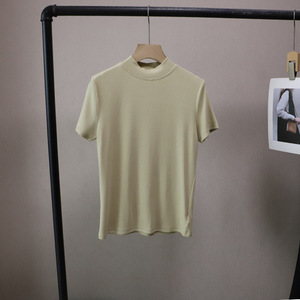 [比正]2025秋季新韩版时尚半高领简约百搭休闲短袖打底T恤女4834