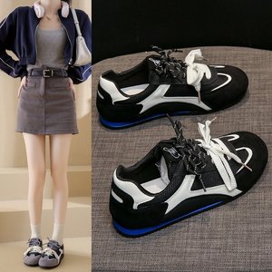 2025秋季新款透气网面阿甘鞋系带防滑韩版平底休闲女鞋百搭单鞋